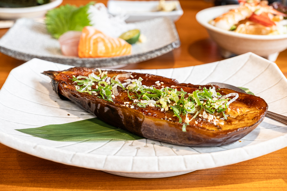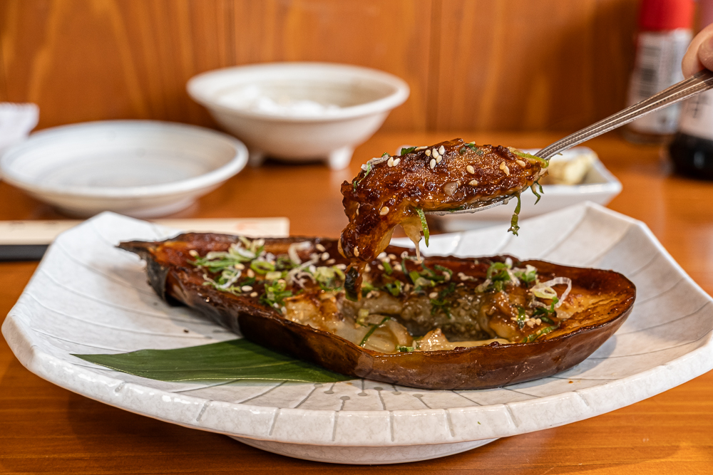 「米茄田樂燒」使用了日本產的胖胖茄子,茄子吸附了濃郁的味增醬汁,鹹鹹甜甜的調味很涮口,茄子口感柔軟,不愛吃茄子的也覺得超好吃!